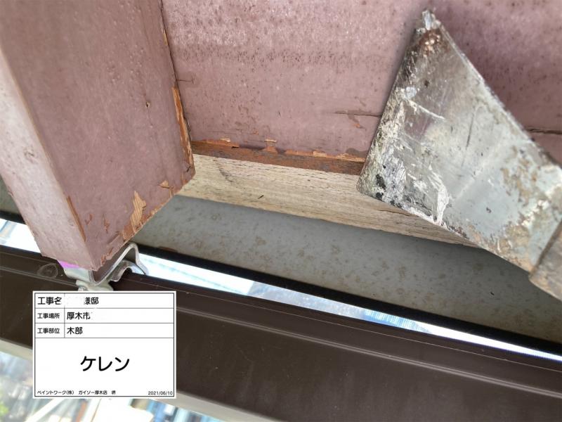 地道な作業ですが、これをきれいにすることで、旧塗膜や傷んだ木部ごと剝がれてくることを防ぎ、新しい塗膜がきれいに仕上がります。